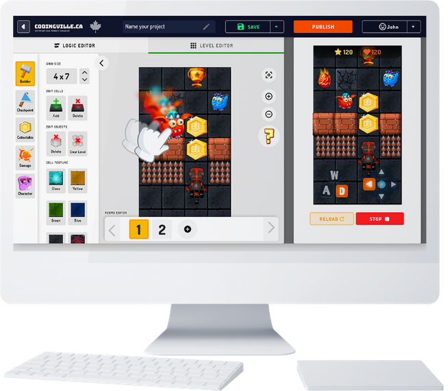 Codingville.ca™ is a game-based learning platform that introduces foundational coding skills and logic through interactive, age-appropriate journeys for grades K-3, 4-6, and 7+. Youth have the chance to learn and apply coding concepts in both block and text-based languages, culminating in a final project where they build a game or app using their new skills.